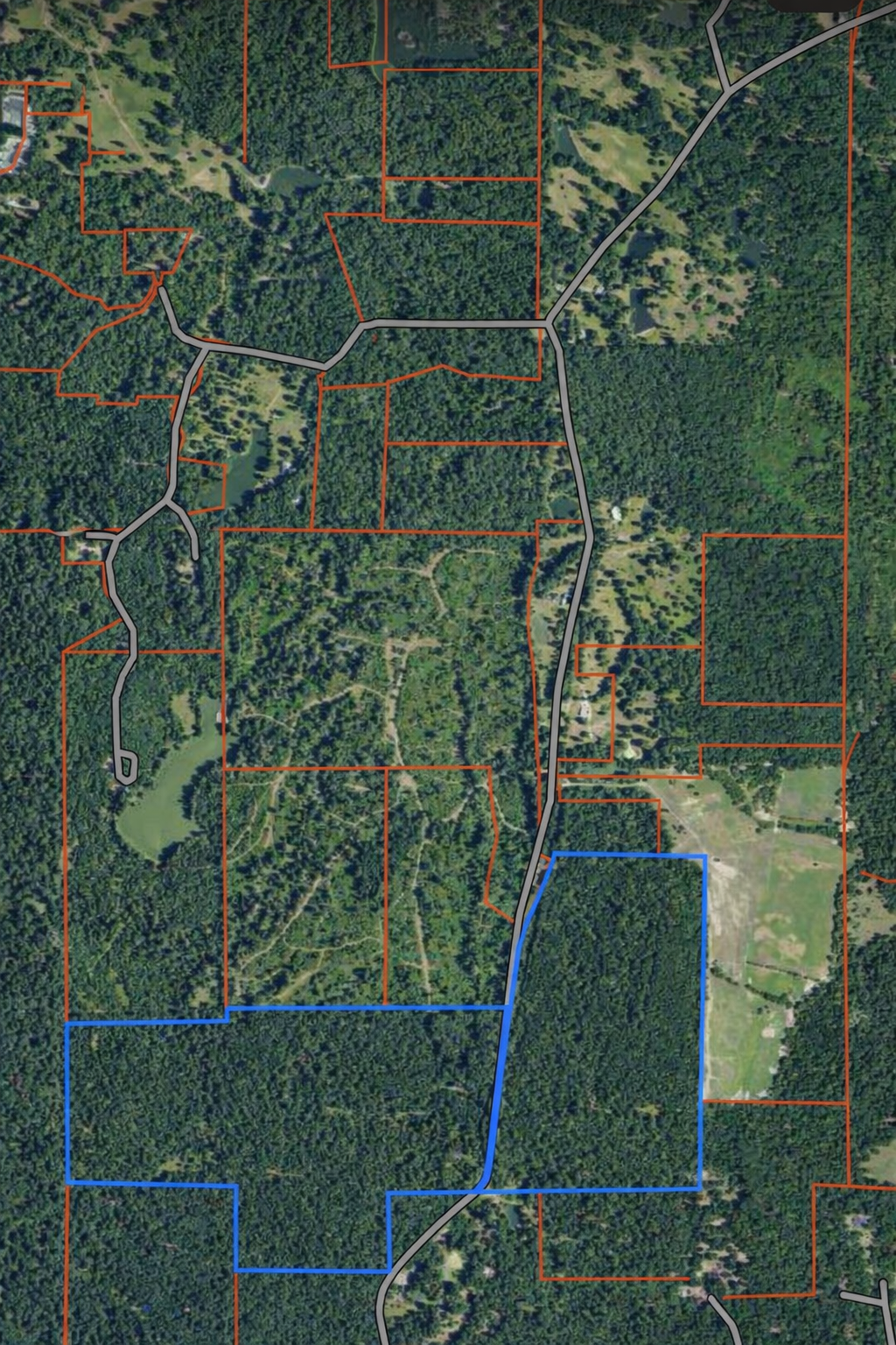 The property features a balanced mix of managed pine plantation and hardwood corridors, creating excellent bedding cover, travel funnels, and edge habitat. Multiple established food plots — including large open fields and long, narrow hunting lanes — provide year-round forage and ideal stand locations.