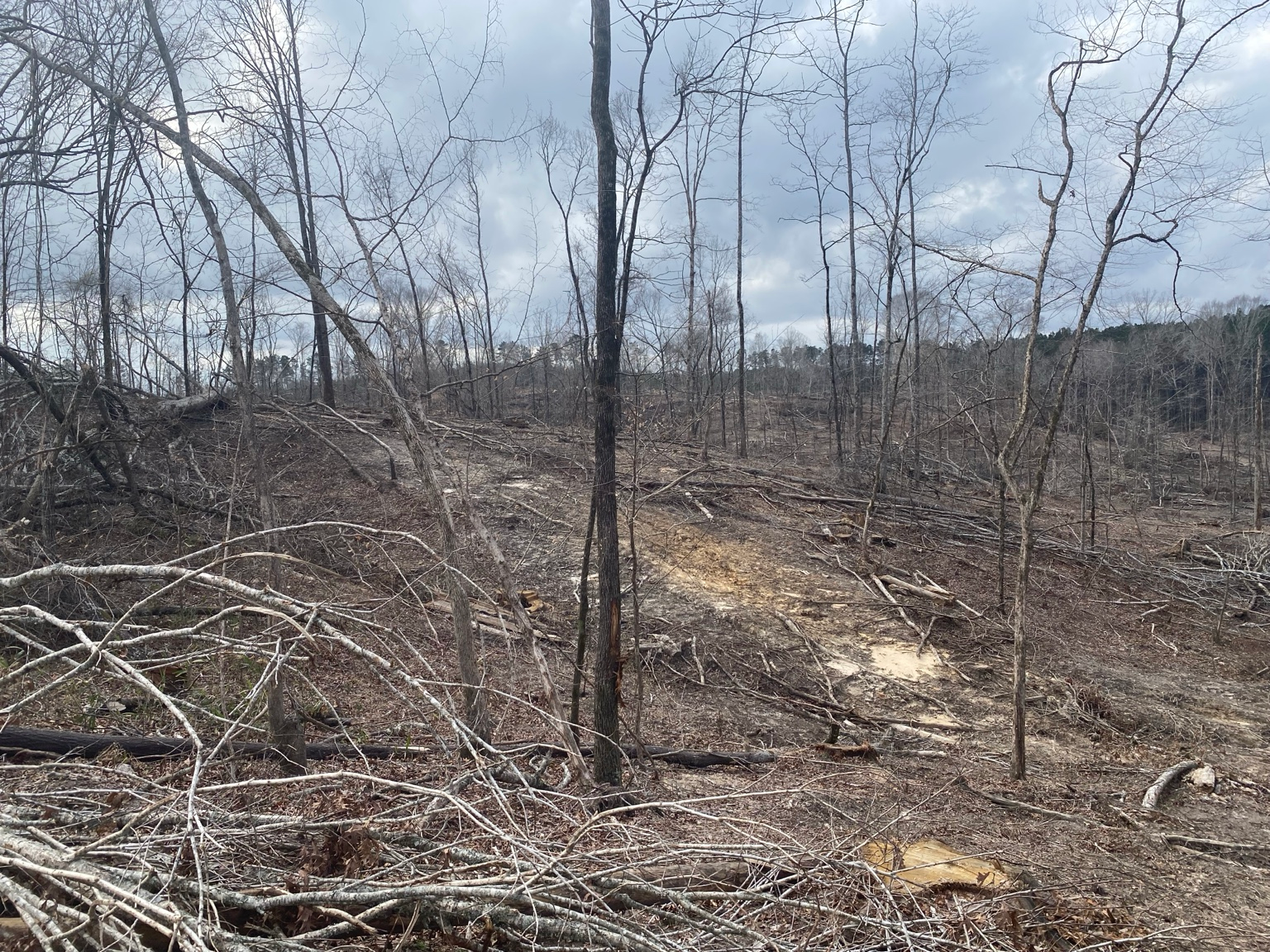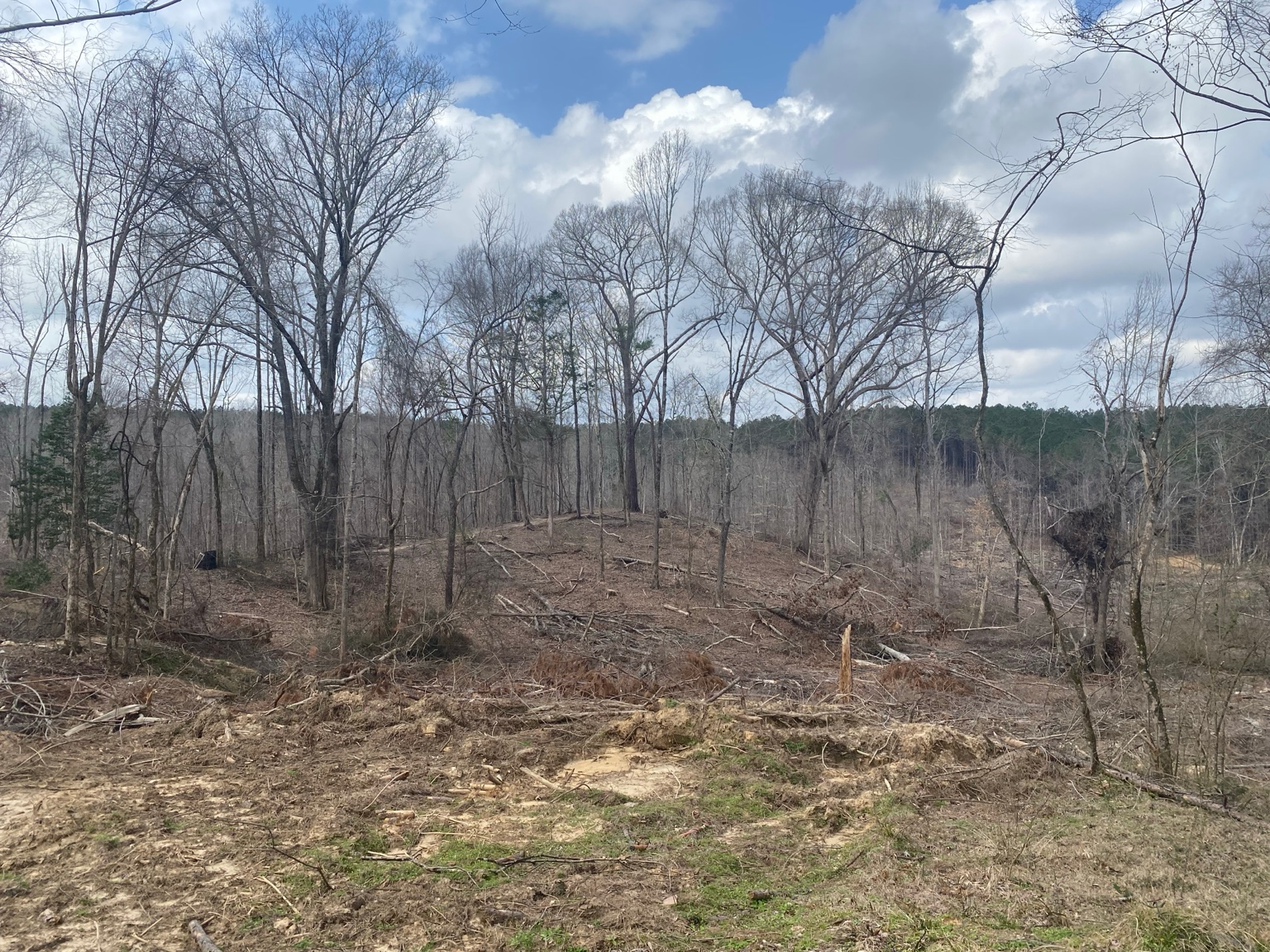 Recently harvested timber has created ideal early successional habitat, producing excellent bedding cover and browse that attracts deer and turkey. The land offers rolling topography with internal trails, allowing easy access throughout the property and multiple opportunities for hunting locations and food plot development.